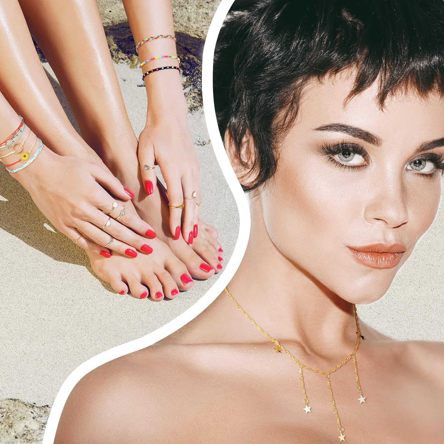 Universal size: each chain choker necklace and beach surfer strand wave bracelets are adjustable, suitable for most people without worrying that the sizes may not be appropriate; The rings come in many different sizes, suitable for most women