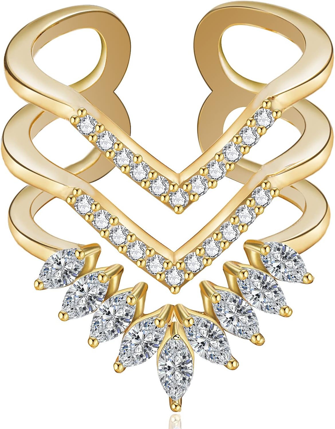 Gold Chevron Statement Rings for Women 14k Gold Plated Gold...