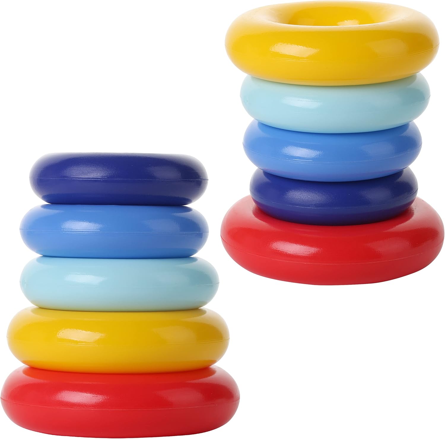 Stacking rings are designed to help children learn numbers 1 to 8, colors, patterning, and basic math. It also helps develop hand-eye coordination and fine motor skills.
